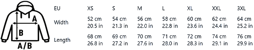 | EU | XS | S | M | L | XL | XXL | 3XL |