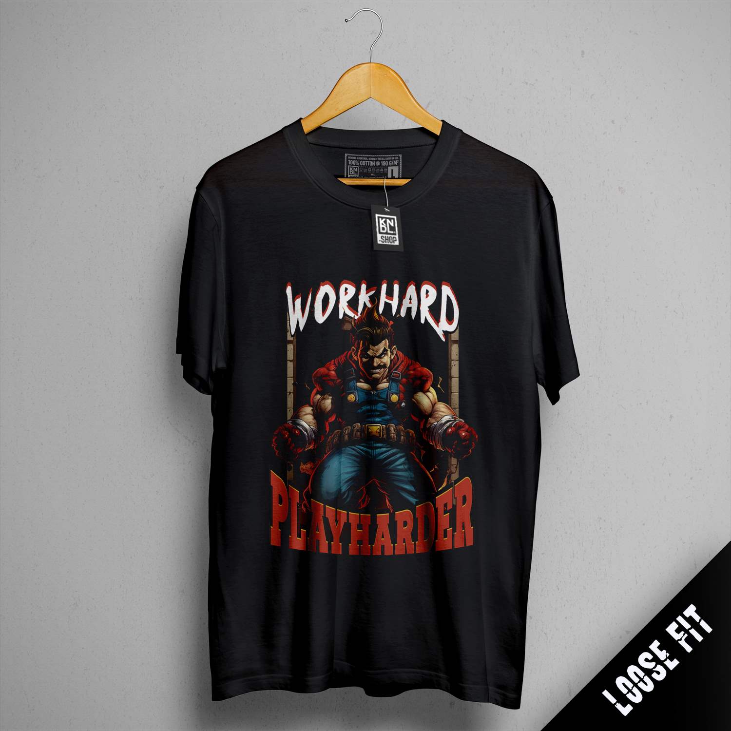 TEE NR 466 | WORK HARD, PLAY HARDER | MARIO INSPIRED SHORT SLEEVE T-SHIRT FOR M/F