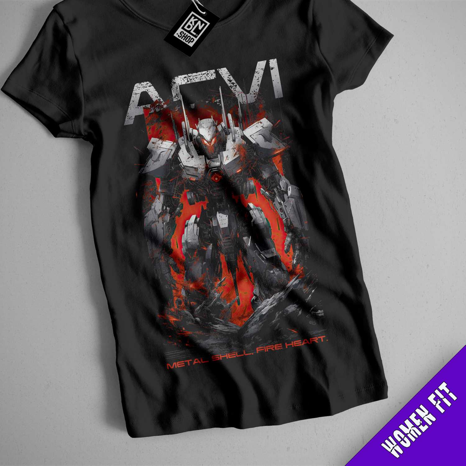 TEE NR 483 | METAL SHELL, FIRE HEART | ARMORED CORE INSPIRED SHORT SLEEVE T-SHIRT FOR M/F