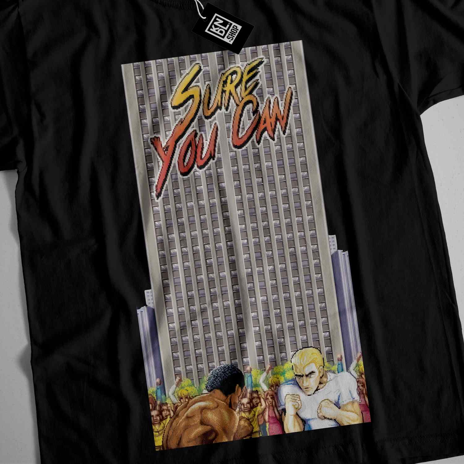 Get ready to fight with our new Street Fighter 2 t-shirt, featuring a graphic of the main screen of the classic arcade game and the caption "Sure you can." This t-shirt is a playful nod to the iconic Shoryuken move, and is sure to bring a smile to any Street Fighter fan's face.