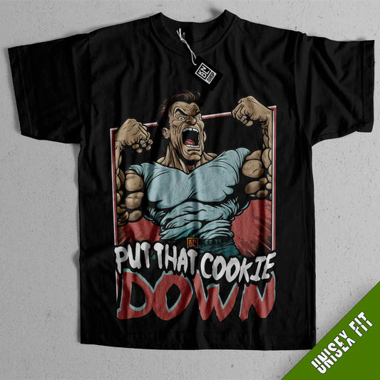 TEE NR 122 | PUT THAT COOKIE DOWN | ARNOLD SHWARZZNSDIKFUJDHSGER INSPIRED SHORT SLEEVE T-SHIRT FOR M/F